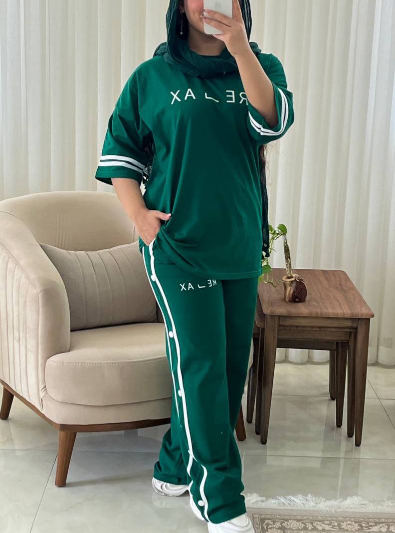 جنس: نخ پنبه فری سایز ۳۶ تا ۴۶ قد شلوار ۱۰۶ قد تیشرت حدودا ۷۴ دور سینه ۱۱۲ تا ۱۱۷ دور ران ۶۳ تا ۷۵